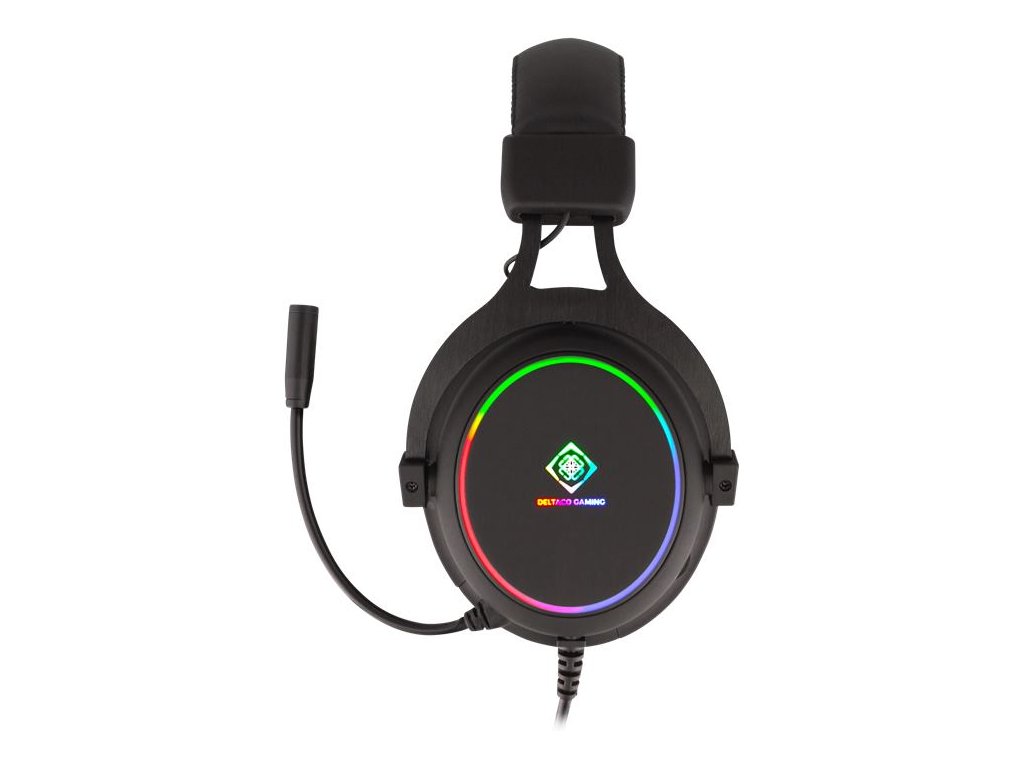 RGB Gaming headset od DELTACO GAMING s masívnymi 57 mm meničmi pre skutočne intenzívny a na zážitky bohatý zvuk. Vankúše pre slúchadlá sú vyrobené zo syntetickej kože, aby poskytovali skutočne dobré pohodlie aj počas dlhých hier.