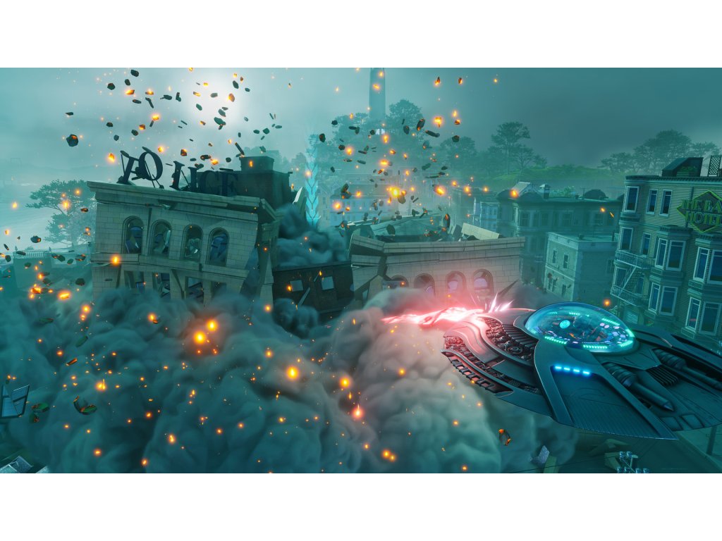 - Explore 1960’s Mother Earth and unload your trusty saucer all over her fictional cities