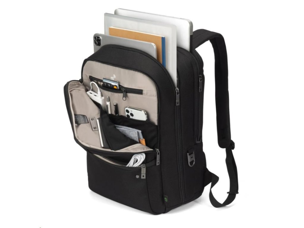 Batoh FIVE kombinuje bezpečnosť, organizáciu a ergonomické pohodlie v elegantnom a funkčnom dizajne. Ochranná priehradka na notebook je vybavená streďovou oporou v tvare písmena V, ktorá zabezpečuje, že vaše zariadenie zostane bezpečne na mieste a v optimálnej polohe. V prednej priehradke s organizovanými kapsami je prehľadne uložené príslušenstvo a nevyhnutné veci, zatiaľ čo ergonomický, priedušný vankúš na chrbte poskytuje celodenné pohodlie. Je vyrobená z 32 recyklovaných PET fliaš, čo predstavuje udržateľnú voľbu, ktorá neohrozuje funkčnosť ani odolnosť.
