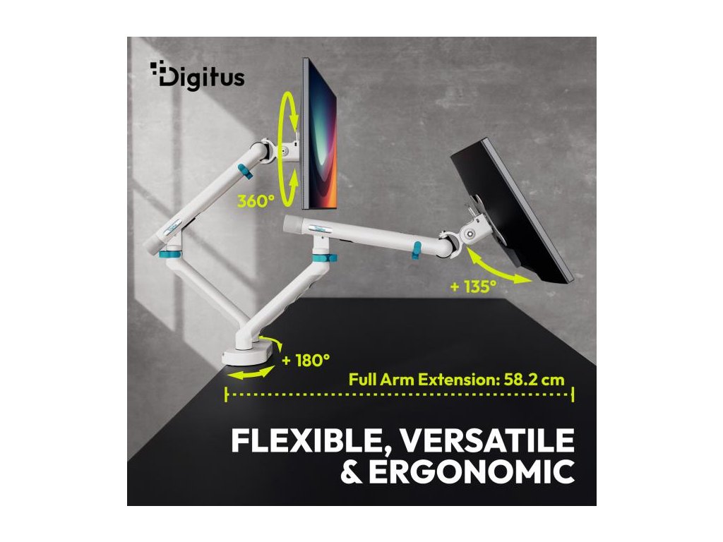 Digitus držák na dva monitory 2x 35"/10 kg, mechanická pružina, VESA: 75x75, 100x100, bílý