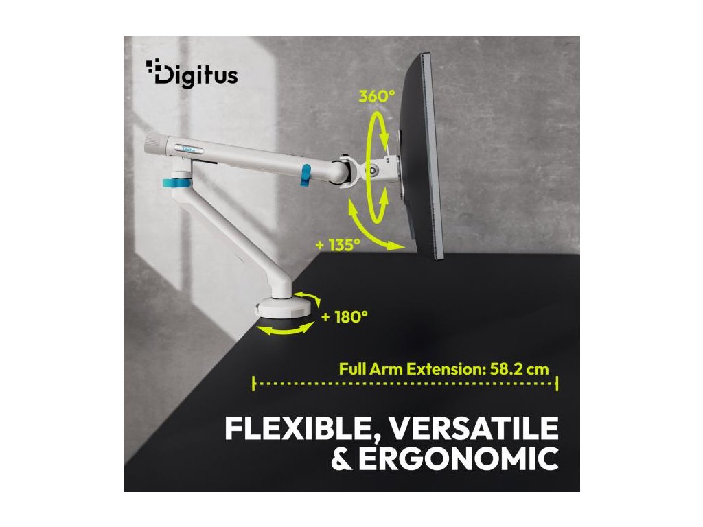 Digitus držák na jeden monitor 35"/10 kg, mechanická pružina, VESA: 75x75, 100x100, bílá