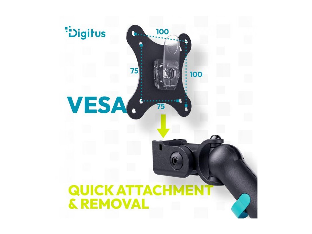 Digitus držák na jeden monitor 35"/10 kg, mechanická pružina, VESA: 75x75, 100x100, černý