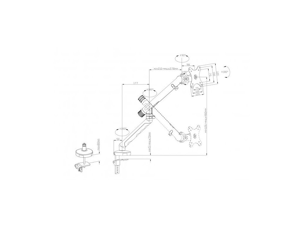 Plně mobilní držák pro jeden monitor je ideálním řešením pro moderní pracovní stanice, kde je flexibilita, ergonomie a organizace prvořadá. Tento držák je určen pro obrazovky do 35 palců a s nosností až 10 kg, takže je vhodný jak pro ploché, tak pro zakřivené monitory. Díky integrovanému pružinovému napínacímu mechanismu lze monitor plynule nastavit na příslušnou hmotnost bez použití nářadí – pro dokonalou rovnováhu a snadné nastavení v jakékoli poloze. Držák nabízí maximální mobilitu: otáčení, naklápění, otáčení a nastavení výšky umožňují ergonomické nastavení monitoru podle individuálních požadavků. Praktická funkce rychloupínání VESA umožňuje rychlé a snadné připevnění nebo odebrání obrazovky, zatímco rychloupínací spojka usnadňuje instalaci držáku. Díky svému prostorově úspornému designu a integrovanému systému správy kabelů držák monitoru nejen zajišťuje úhledný vzhled, ale také maximalizuje využitelnou pracovní plochu. Dvě možnosti montáže – stolní svorka nebo průchodka – nabízejí dodatečnou flexibilitu montáže. Držák je kompatibilní se standardy VESA 75x75 a 100x100, a proto je všestranný. Technické detaily Maximální velikost monitoru: 35" Maximální nosnost: 10 kg Mechanická pružina s nastavením napětí (bez použití nářadí) Kompatibilita s VESA: 75x75, 100x100 Vhodné pro ploché i zakřivené monitory Testovaný a certifikovaný ergonomický produkt - Certifikováno IGR (Institut pro zdraví a ergonomii) Naklonění monitoru: 135° (+ 90° až -45°) Otočení monitoru: 180° (+90° až -90°) Otočení monitoru: 360° (+180° až -180°) Plné prodloužení paže: 58,2 cm Typ montáže: Upínací konzola nebo průchodka stolem Doporučená tloušťka desky stolu: Svěrka: 5 - 70 mm, pouzdro stolu: 5 - 80 mm Funkce VESA Quick-Release (rychloupínací systém) Integrovaná správa kabelů Materiál: ocel, hliník, plast Rozměry: H 12,6 x Š 21,3 x V 54,5 cm Hmotnost: 2,45 kg Barva: ČernáDodatočné parametre