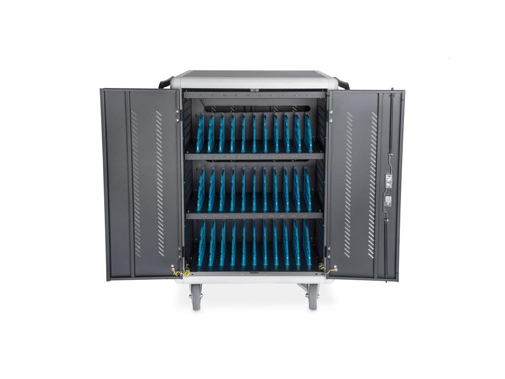 DIGITUS nabíjecí vozík pro notebooky/tablety, až pro 30 zařízení do 15,6", dual charge way 230V + USB-C (PD 18W na zař.)