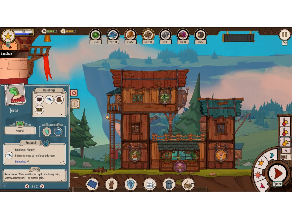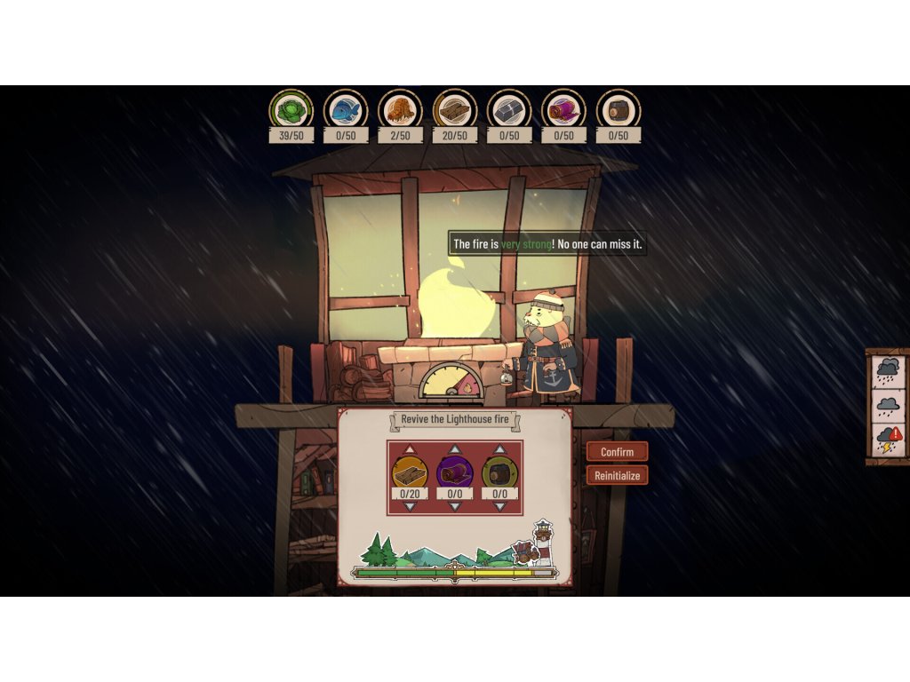 As the weather gets worse, a walrus, acting as a lighthouse keeper, welcomes the travelers looking for a place to sleep. As the keeper, manage the travelers and fulfill their requests in the hope of withstanding the natural disasters, and grow your hamlet on land, under the sea or among the clouds.