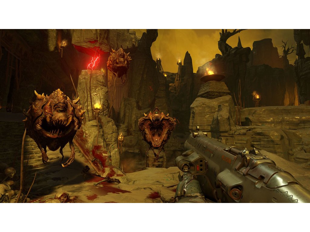 - Brutal finishers - stagger your enemies with a hail of bullets and finish them off with a Glory Kills for extra gore and health