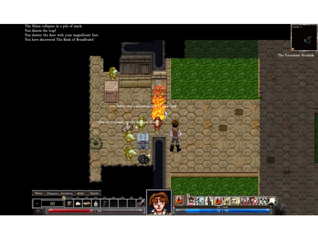 Long ago, the Dark Lord Dredmor was bound in the darkest dungeons beneath the earth by great and mighty heroes. Centuries later, the magical bonds that hold him in place are loosening and his power grows ever stronger. The land cries out for a new hero, a powerful warrior or a mystic wizard like those spoken of in the prophecies of yore. What they have, unfortunately, is you... Step into the Dungeons of Dredmor! Embrace your destiny! Face evil of the likes the world has never known - the terrifying Swarmies, the undulating Thrusties, and the adoreable nest-building Diggles. Worship Inconsequentia, the Goddess of Pointless Sidequests, or try your luck as a devotee of the nameless Lutefisk God. Cast powerful magic learned from the dark business warlocks of the school of Necronomiconomics, or summon the Viking Runes of your ancestors to blast your foes with thunder and lightning! Discover the power that can be had by wielding a bizarre armament of devastating weaponry such as the Interdimensional Axe, the Plastic Ring, and the Invisible Shield (if you can remember where you left it). Wield shoes decorated by the Dwarven Glittersmiths, all of whom have now committed suicide because of their shame, and embrace the joys of destroying giant moustache-wielding brick demons with a mace decorated with tawdry, delicious bacon. While you’re at it, be prepared to die. A lot. In hideous, screaming pain that makes you throw your keyboard out the window. The Dungeons of Dredmor await. Are you ready for them?