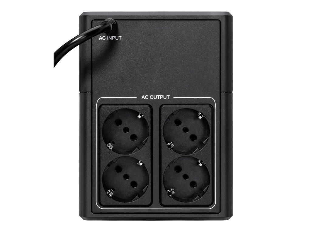 | Špeciálne funkcie | Automatická regulácia napätia (AVR) Úspora miesta vďaka kompaktnému vežovému konceptu Port USB kompatibilný s HID pre automatickú integráciu s hlavnými operačnými systémami (Windows/Mac OS/Linux) Obsahuje štyri zásuvky Schuko (DIN) |