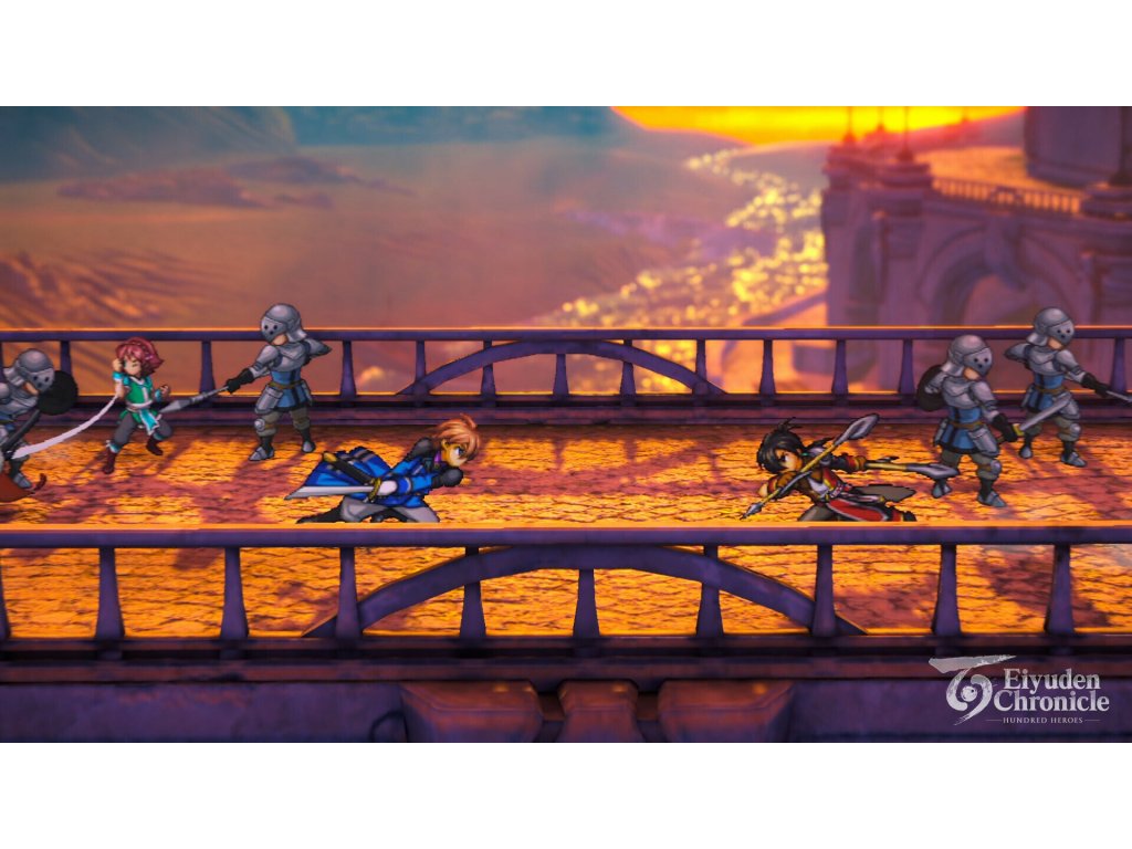 Eiyuden Chronicles: Hundred Heroes is designed to bring players a modern take on a classic JRPG experience. Get ready to lead 100+ playable characters through a war-torn world only you can save.