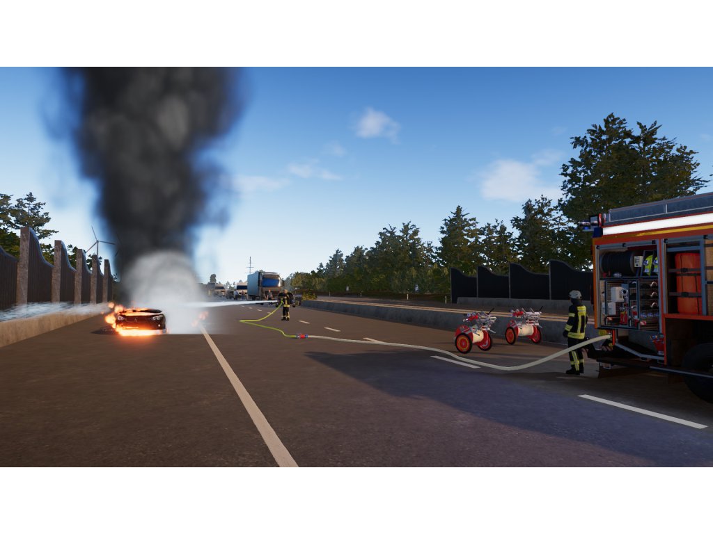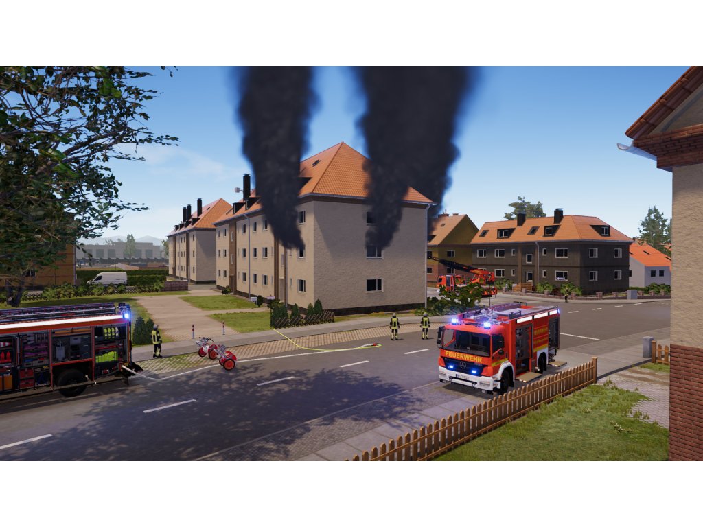 The now completely newly created game world ensures more realism and atmosphere while fulfilling the diverse tasks that await you. Whether with small emergency vehicles or with an entire fire truck to fight roof truss fires, you are always in control of the action.