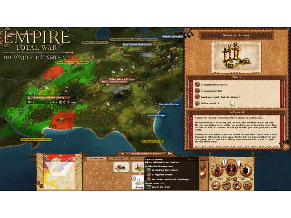 - 5 New Playable Factions - You can play through the new Warpath Campaign or in multiplayer as one of 5 new American Indian factions in Empire: Total War, including the Iroquois, Huron, Plains, Pueblo and Cherokee nations.