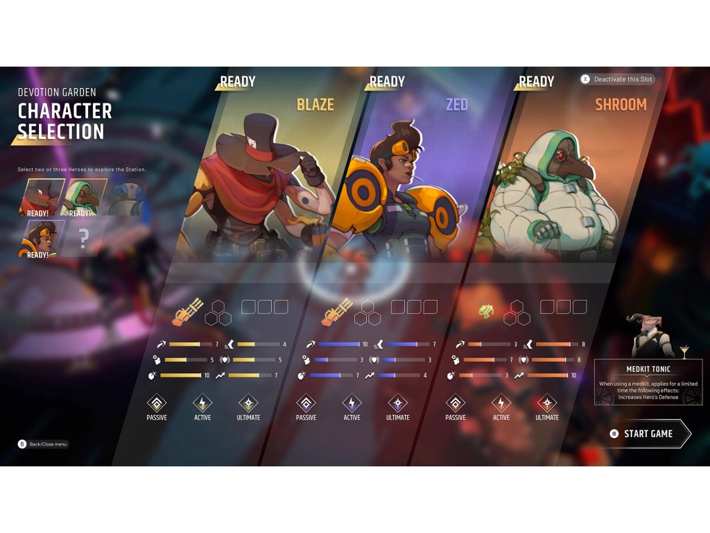 Prepare to meet a cast of colorful heroes all gunning for the same goal: to get the hell out! Each brings their own cards to the table. There's tanky Bunker who'll soak up damage, fiery Blaze who loves to blow stuff up, or maybe Shroom who'll heal her squadmates with her "unusual" incense. Select your heroes to build the team that works for you. As you get to know them, you'll learn that they all have their own particular motivations and secrets...