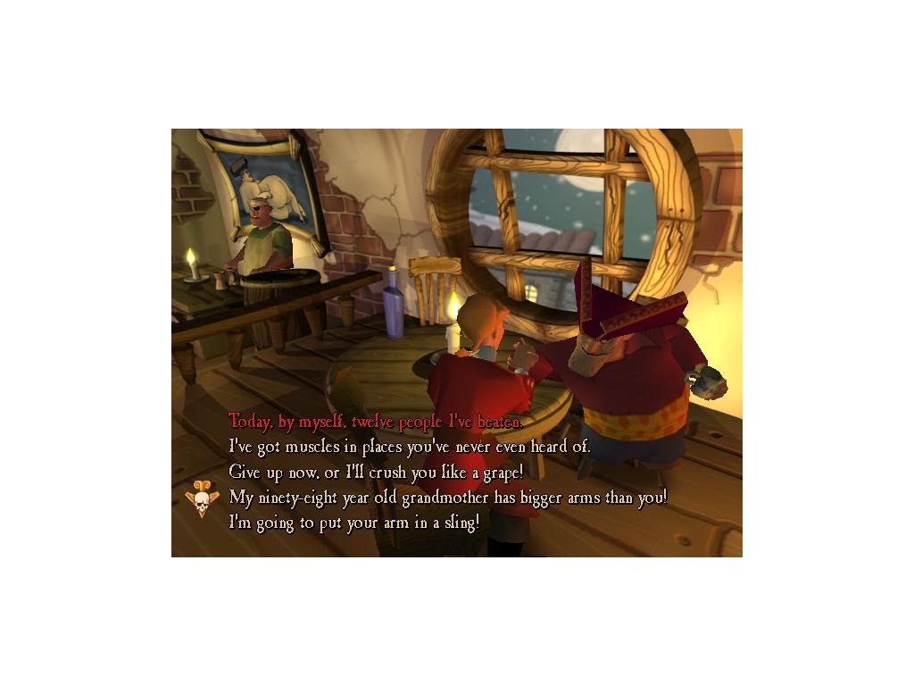 Spitting the sand of Monkey Island from my mouth, I wondered if the life of a mighty pirate was all it was cracked up to be. I'd ignored recent events that should have been warning shots across the bow of my soul, from my wife's brush with death to the anti-pirate ramblings of an Australian gazillionaire. If only I'd chosen a different path, LeChuck might still be dead and the Ultimate Insult might have remained a mystery. If I'd never picked up a sword, the grog-swilling pirates of the Tri-Island Area might be unthreatened by the forces of gentrification and demonic heckfire. If only... suddenly, the hairy finger of a familiar monkey tapped me on the shoulder. It was time. Time for the biggest battle of my swashbuckling life.Fourth in the legendary Monkey Island series of graphic adventures!