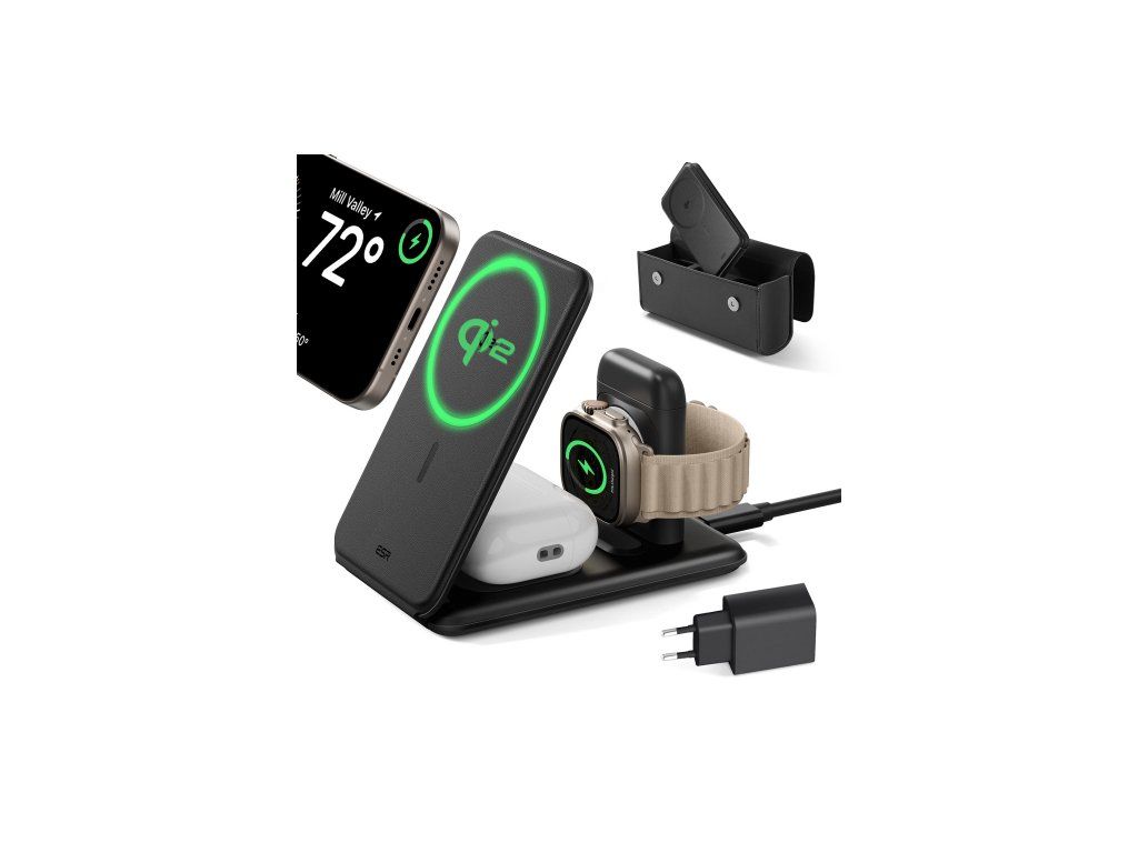 ESR Qi2 3-in-1 Travel Wireless Charging Set - Black