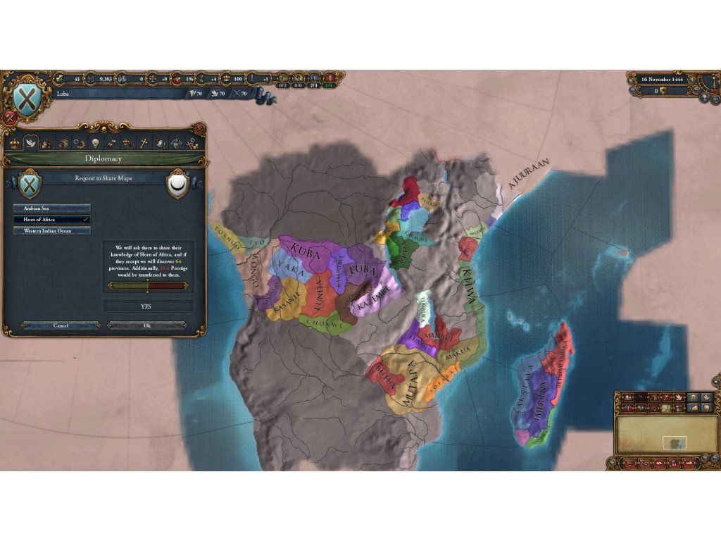 - Map Sharing: Map Sharing : This is a new diplomatic action, where you can ask other nations for their map of a certain region.