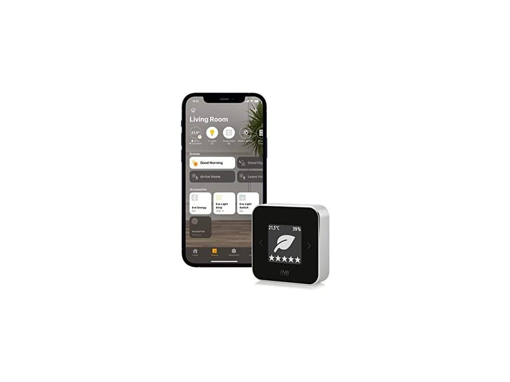 Monitor kvality ovzdušia. Informácie o teplote, vlhkosti a kvalite vzduchu (VOC) . Vysoko kontrastný displej. Bezdrôtové a nabíjacie prevedenie. Bluetooth a Thread technológie. Najvyššie súkromie dát. Informácie na displeji av aplikácii. Automatizácia čističky vzduchu, zvlhčovača, ventilátora a ďalšie zariadenia. Možnosť nastavenia scén. Nutné spárovať s Apple TV alebo HomePod.