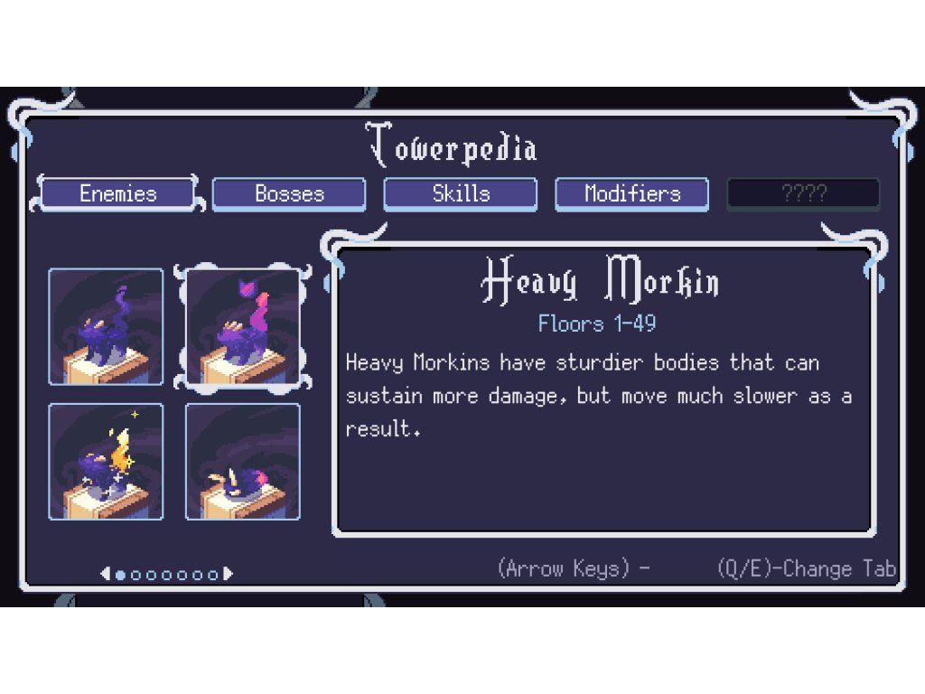 The Tower has 50 floors divided into 5 Areas. Each area is unique and introduces new types of enemies. The higher you get in The Tower, the more complex floors will become. Each area has a Shop Floor, where you can spend shards acquired in exchange for health recovery, Skills and Modifiers. Plan accordingly to increase your chance of getting to the top.