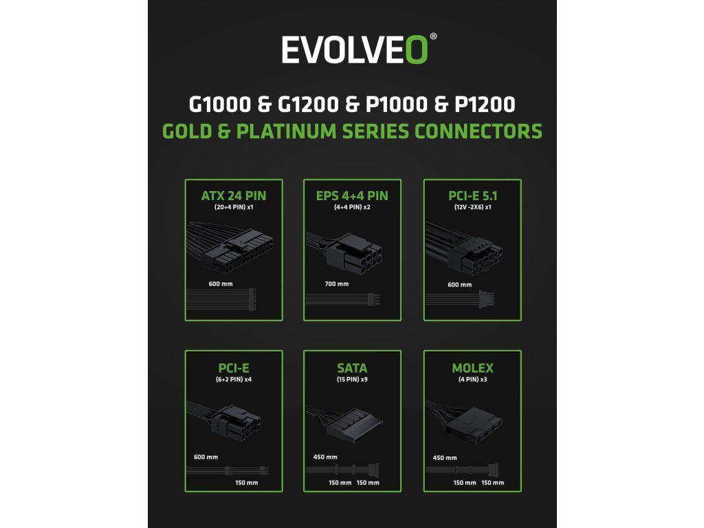 EVOLVEO G1000/1000W/ATX 3.0/80PLUS Gold/Modular