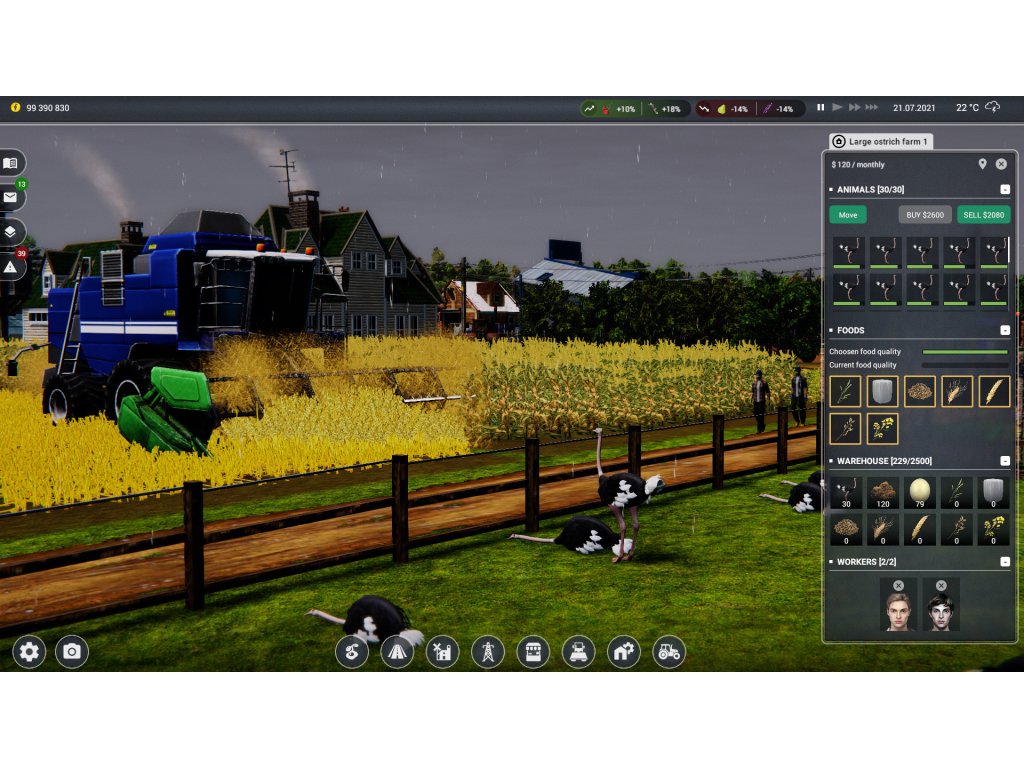 - Animals - In Farm Manager 2021 you will find bees, sheep, goats, rabbits, chickens, turkeys, ducks, geese and cows. For the first time, you will be able to set up a fish farm, ostrich, wild boar and quail farm.