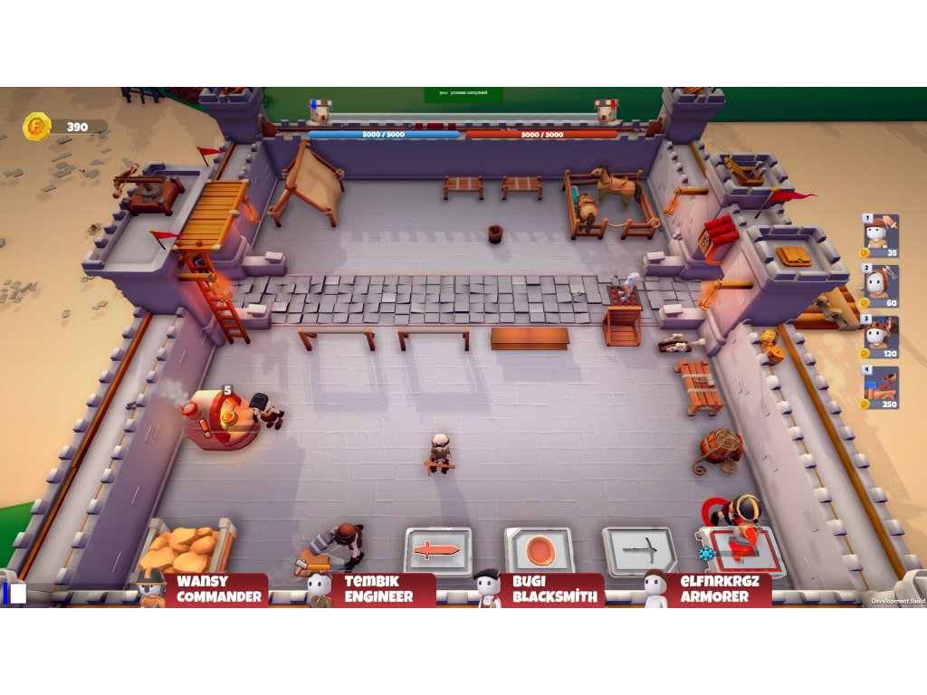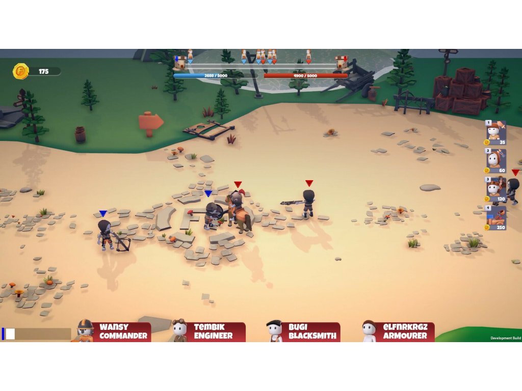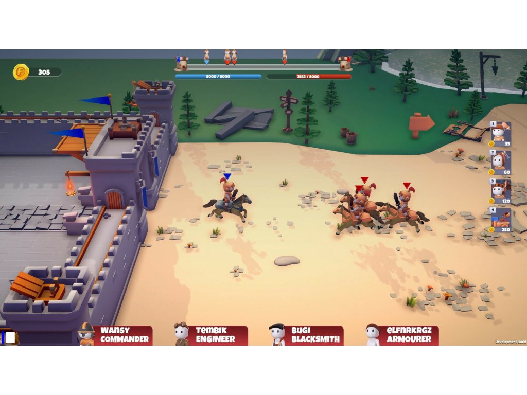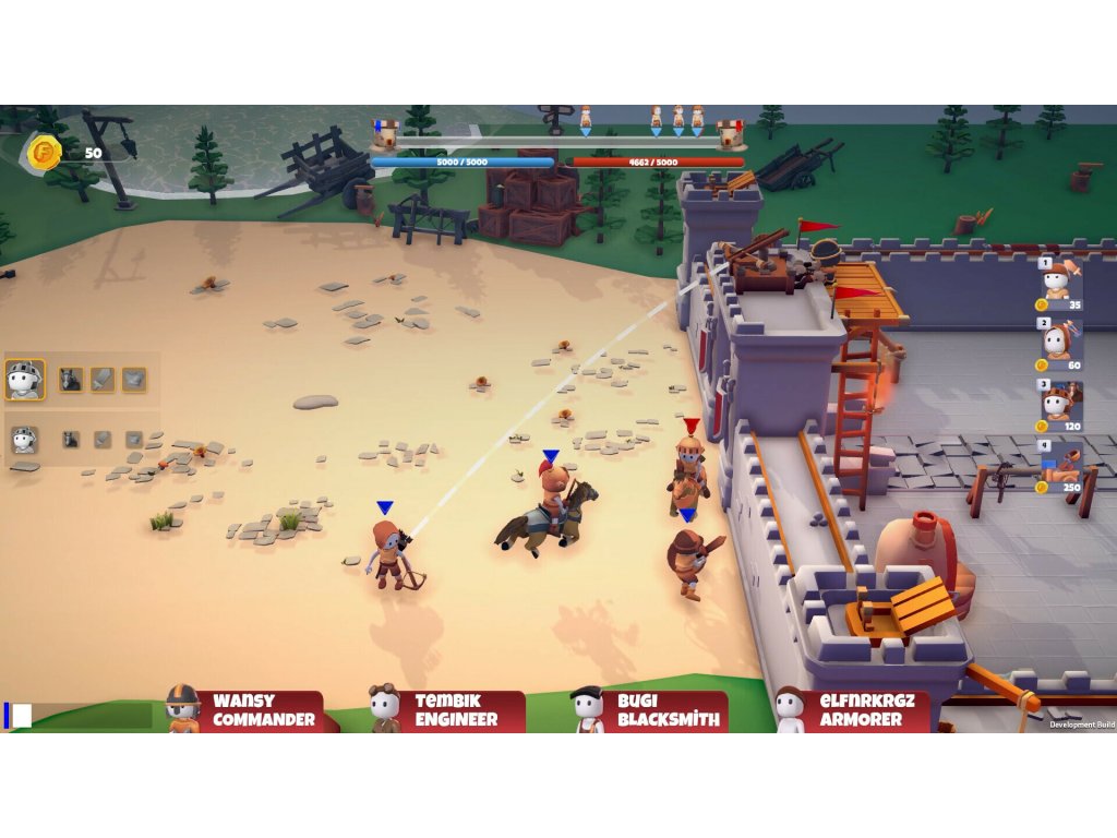 Determine your strategy and be the first to destroy the opposing tower. As the commander, create a strategy for your team, determine soldier production, and provide support on the battlefield! As the blacksmith, create weapons , as the armor master, create armor, and as the engineer, develop the castle, and manage your economy.