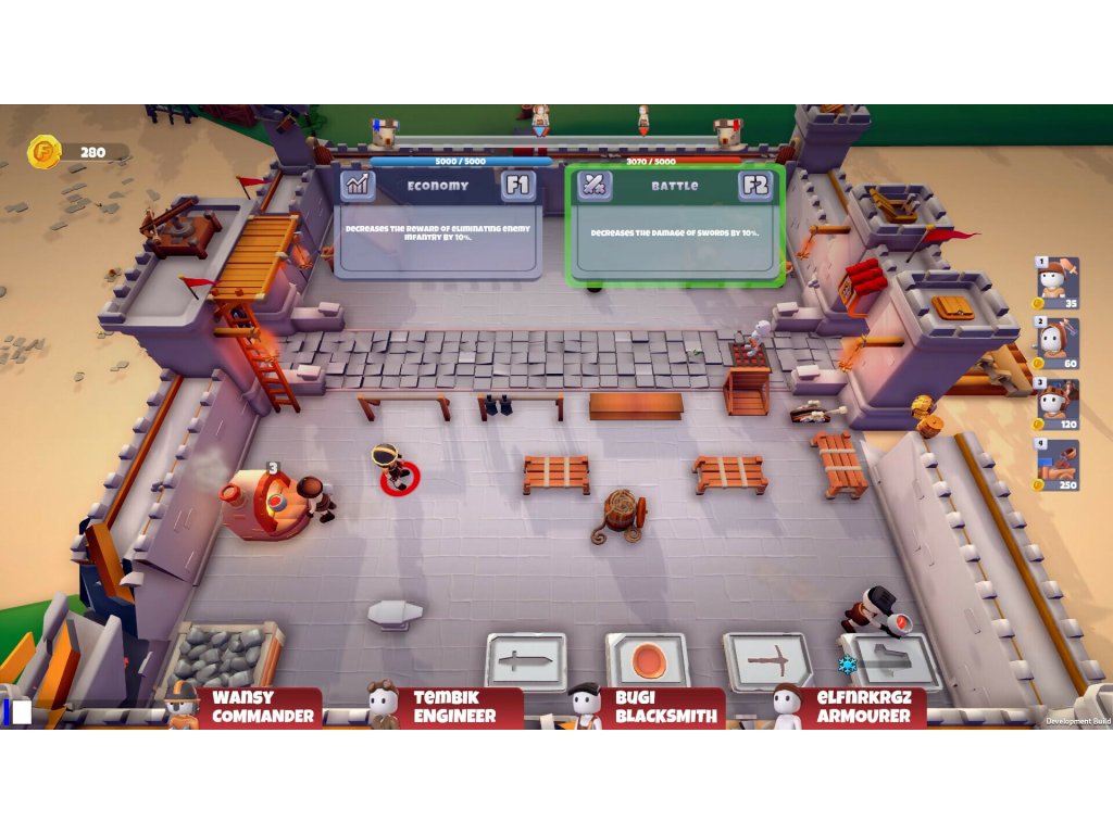 Produce your soldiers, upgrade your equipment, and fight to win in a chaotic castle! Build your team for 1-4 Online Co-op and PVE mode options!