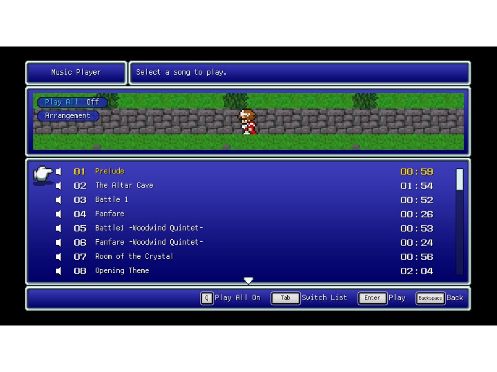 - Switch the soundtrack between the rearranged version, created for the pixel remaster, or the original version, capturing the sound of the original game.