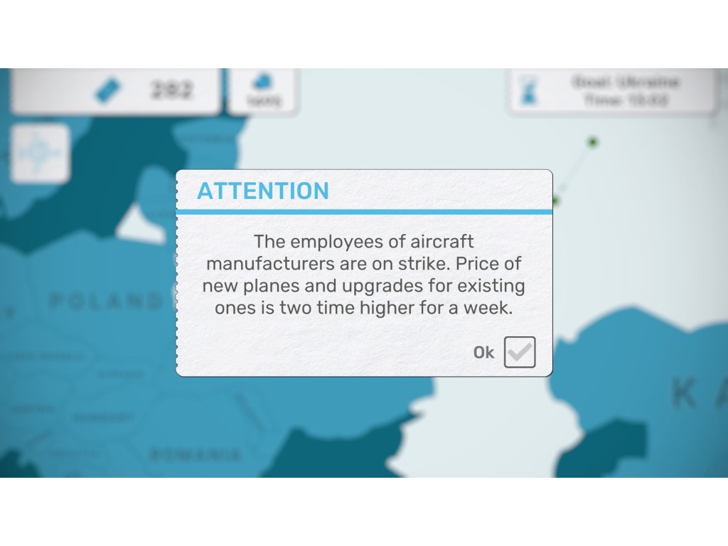 Fly Corp is all about growth and progress. You'll be building new airports and m, making connections between cities. But of course, such an undertaking can't be done in a rush. you'll have to manage finances as well as passenger flow. Even the smallest of mistakes can cripple the whole mechanism and cause huge losses. You also have to take into consideration various factors such as distance. In Europe, for example, the distances between cities are small but if you want to expand across the pacific ocean you'll have to make a risky investment. Not to mention random events that are outside of your control: sometimes it's because of weather and sometimes an influential customer makes a fuss.