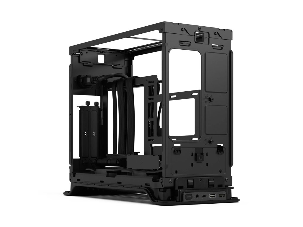 Flexibilní interiér Přizpůsobte svou sestavu prostoru pro chlazení procesoru nebo šířce grafické karty pomocí posuvné středové stěny, která nabízí 15 mm flexibility. *Součástí skříně je předinstalovaný kabel PCIe 4.0 riser a speciální držáky až pro čtyři 2,5” disky.