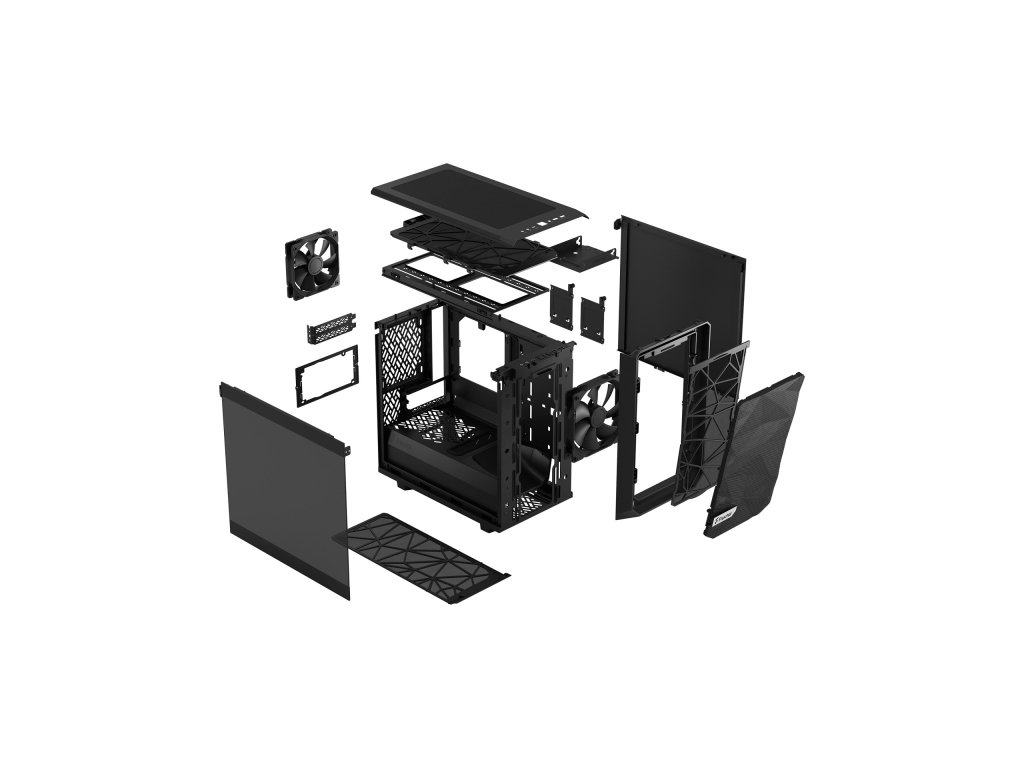 Model: Fractal Design Meshify 2 Nano Meshify 2 Nano nabízí nadšencům do formátu ITX spoustu prostoru pro kreativní sestavování. odnímatelný horní panel a držák horního ventilátoru poskytují vynikající přístup do interiéru a snadné vedení kabelů snadno čistitelné filtry na přední, horní a spodní straně