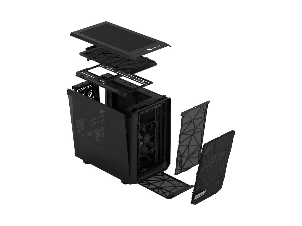 Model: Fractal Design Meshify 2 Nano Meshify 2 Nano nabízí nadšencům do formátu ITX spoustu prostoru pro kreativní sestavování. odnímatelný horní panel a držák horního ventilátoru poskytují vynikající přístup do interiéru a snadné vedení kabelů snadno čistitelné filtry na přední, horní a spodní straně