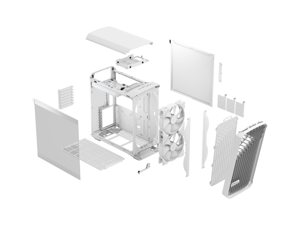 Fractal Design Torrent Compact RGB White TG Clear Tint Torrent Compact je zkonstruován tak, aby co nejefektivněji chladil vaši kompaktní sestavu vzduchem díky otevřené přední mřížce a dvěma našim ventilátorům 180 x 38 mm Dynamic PWM (Prisma pro verzi RGB), což z něj dělá ideální volbu pro milovníky vzduchového chlazení, kteří hledají kompaktní skříň. *Otevřená mřížka a 180mm přední ventilátory optimalizované pro maximální přívod vzduchu *Ventilátory Fractal Design Dynamic PWM / Prisma ARGB PWM 180 x 38 mm využívají výkon, velikost a tloušťku pro masivní výkon při pohybu vzduchu. *Rozsáhlé nasávací otvory základny a mimořádně velká spodní podpora ventilátorů nabízí výjimečný potenciál chlazení GPU (s volným spodním slotem PCI)