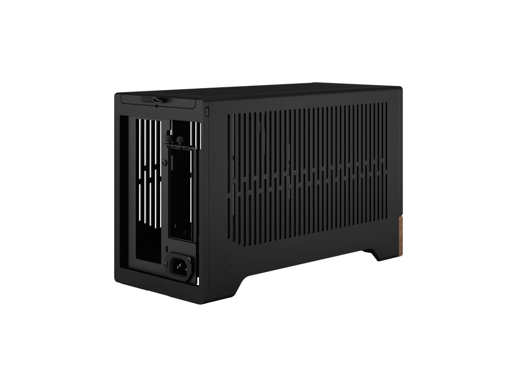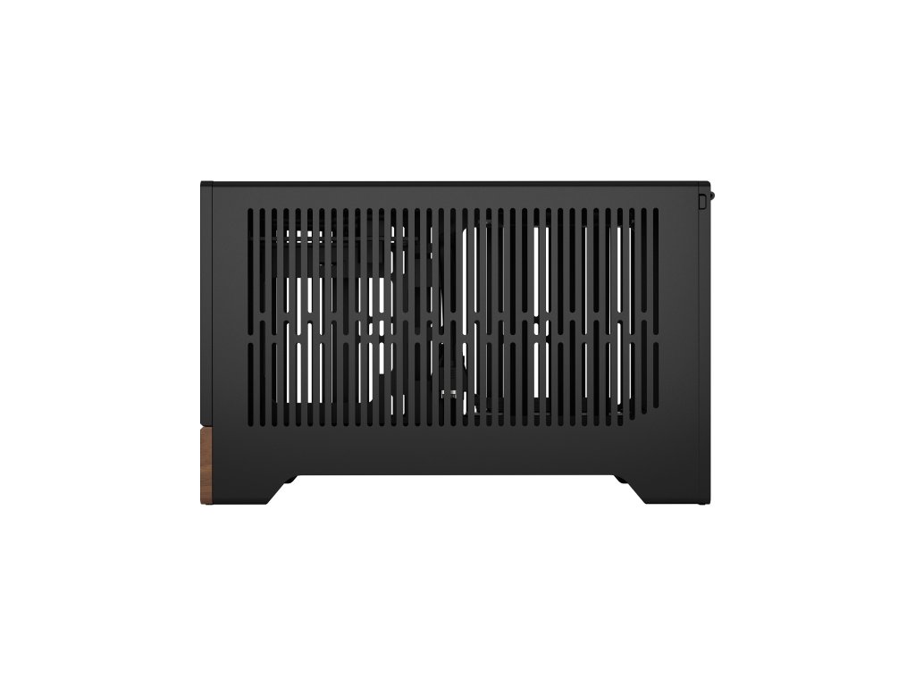 Fractal Terra • malá skříň s objemem 10,4 litrů • přední panel z masivního ořechu s certifikací FSC • přirozené proudění vzduchu přes ventilované horní, boční a spodní panely • plně odnímatelné boční panely pro snadný přístup ke svým komponentům (Push-to-lock bez použití nářadí) • včetně dvou 2,5” držáků disku