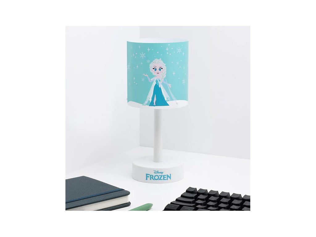 Originálna lampa s tienidlom, na ktorej je vyobrazená Elsa, poteší každú malú princeznú ! Ľadovo modré tienidlo je zavesené na bielom podstavci s nápisom Frozen.