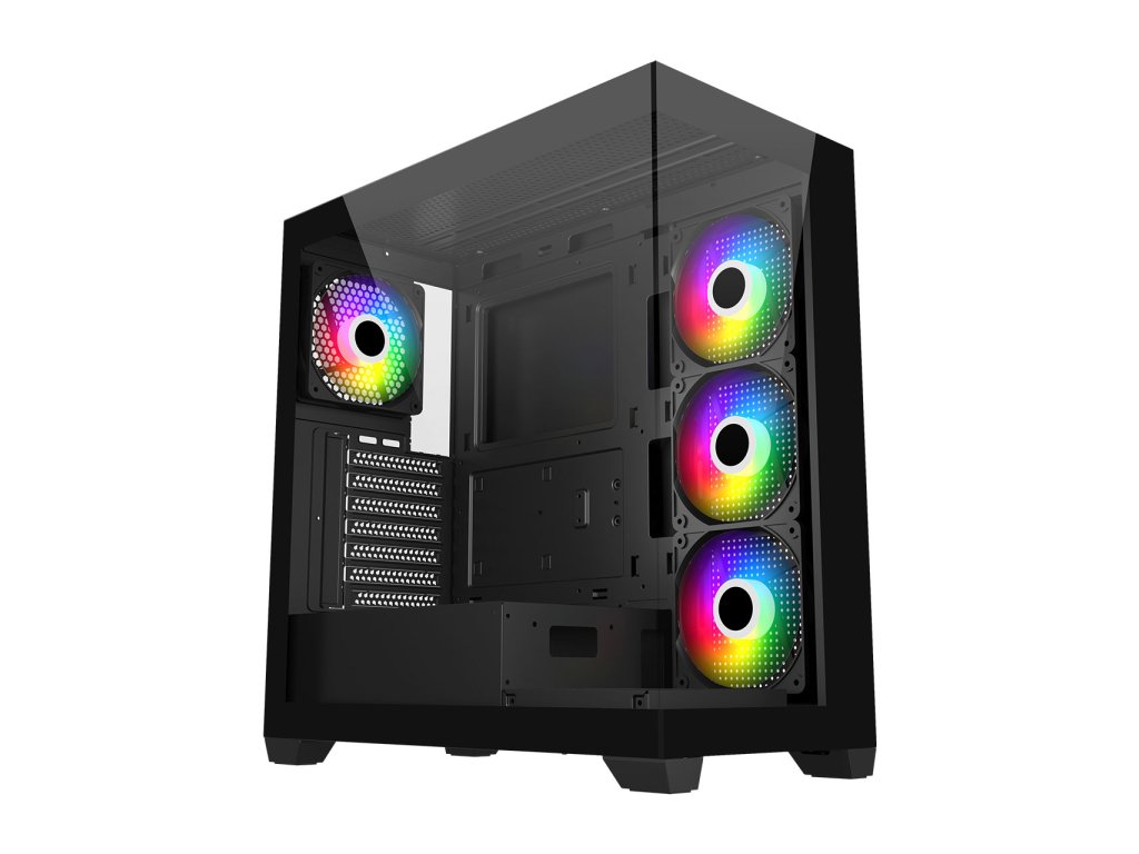 Předinstalované ventilátory: * boční: 3x 120mm reverzní ARGB * zadní: 1x 120mm ARGB