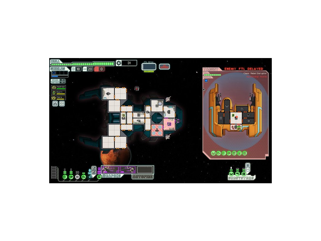 Did you ever want to reroute power to the shields, set phasers to stun, or even eject the warp core? Well, now you can! In FTL, you experience the atmosphere of running a spaceship trying to save the galaxy. It's a dangerous mission, with every encounter presenting a unique challenge with multiple solutions. What will you do if a heavy missile barrage shuts down your shields? Reroute all power to the engines in an attempt to escape, power up additional weapons to blow your enemy out of the sky, or take the fight to them with a boarding party? This "spaceship simulation roguelike-like" allows you to take your ship and crew on an adventure through a randomly generated galaxy filled with glory and bitter defeat.