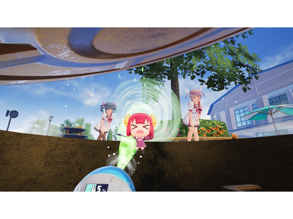 Equip the awesome Demon Sweeper gadget, capable of sucking up Gal*Gun 2's pesky demon menaces… and perhaps some clothing too!