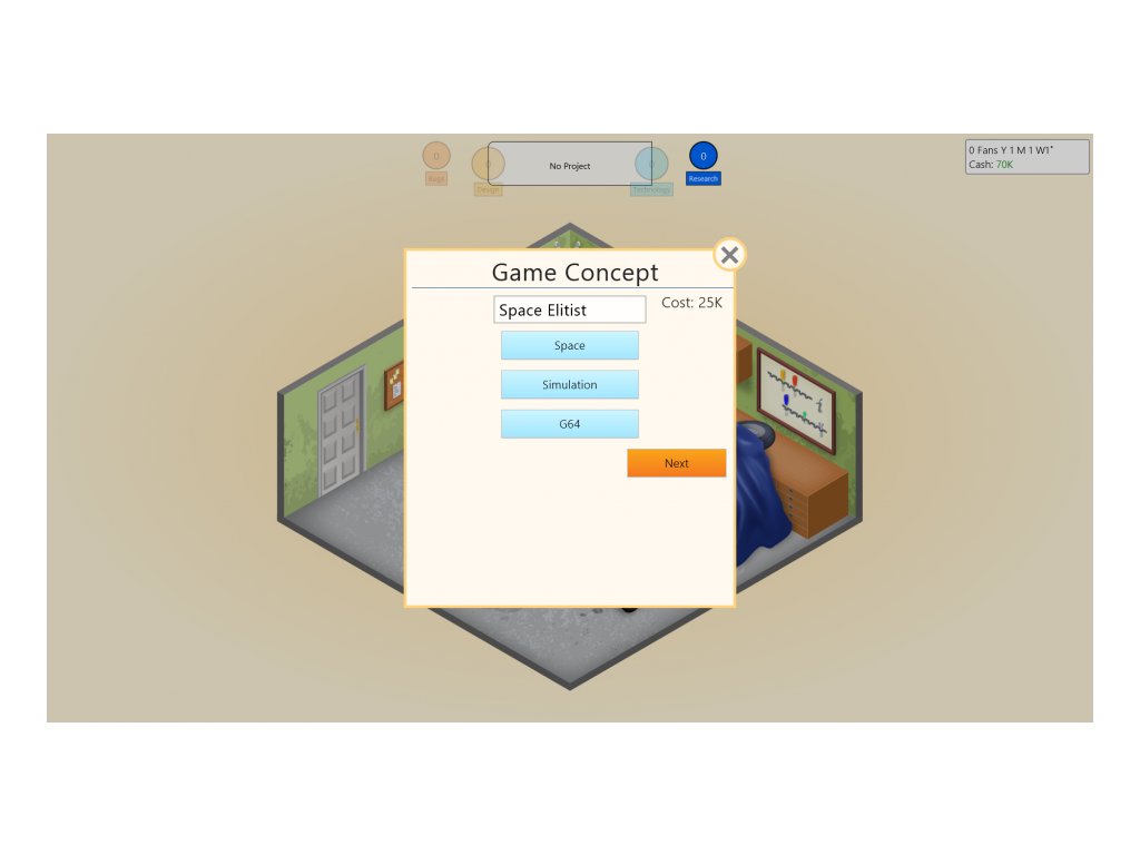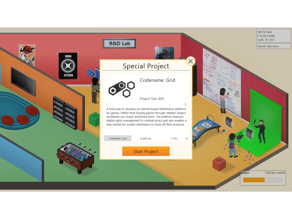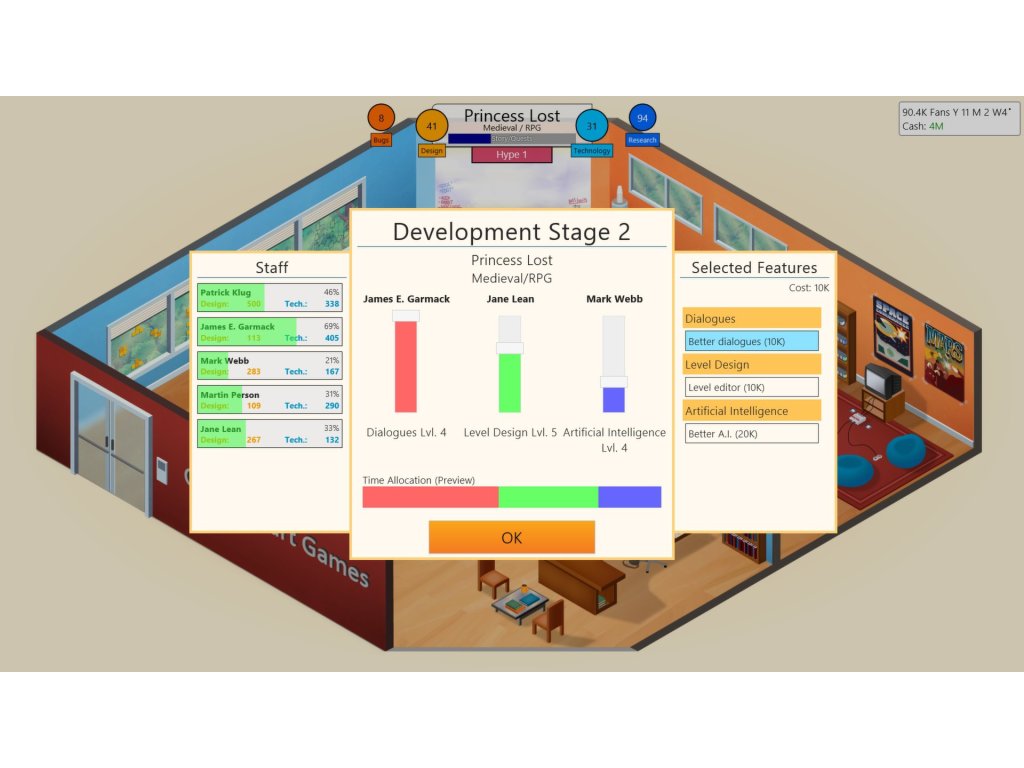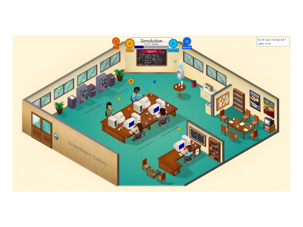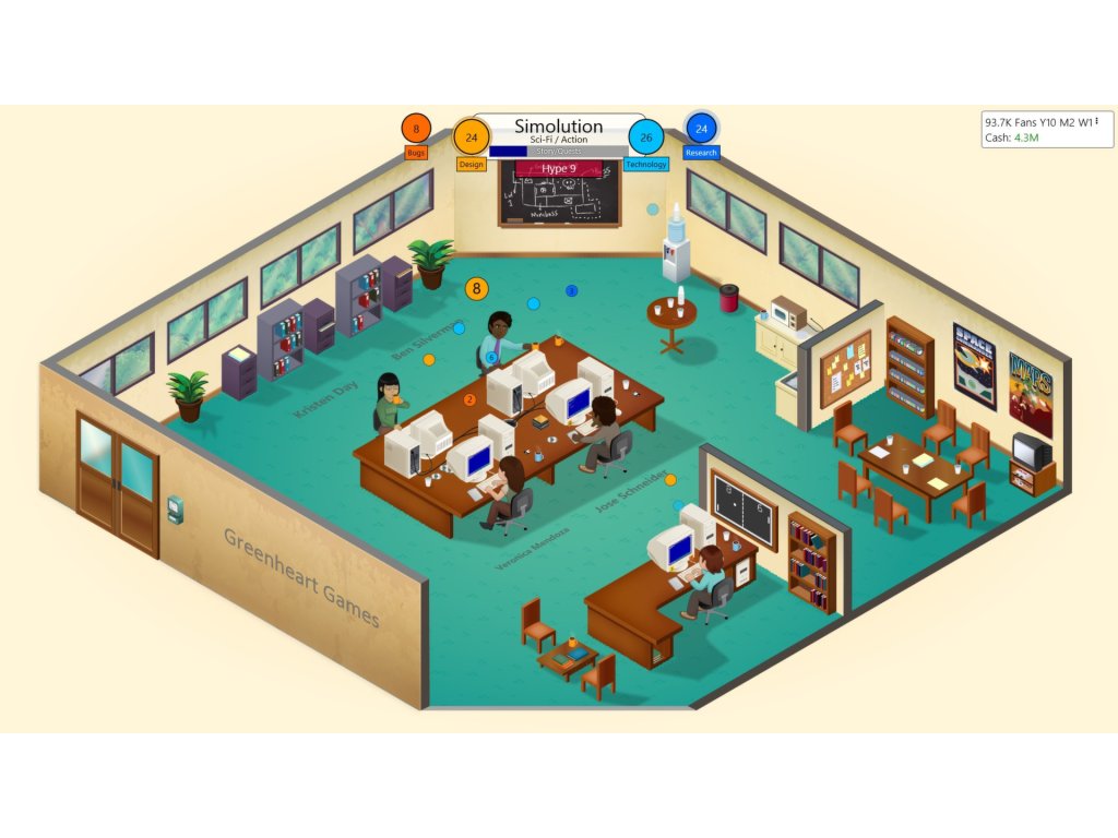 - Once you have successfully released a few games you can move into your own office and forge a world-class development team. Hire staff, train them and unlock new options.
