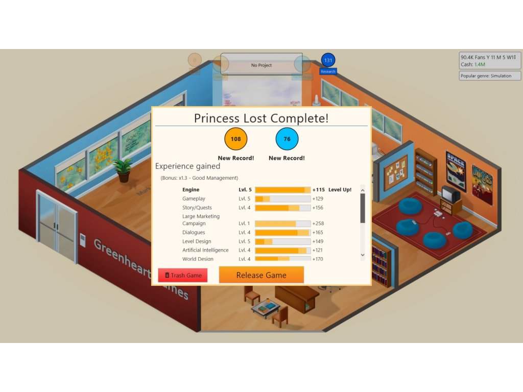 - With experience and a good team, you can release larger, more complex games. Larger games bring new challenges and you will have to manage your team well to deliver hit games.