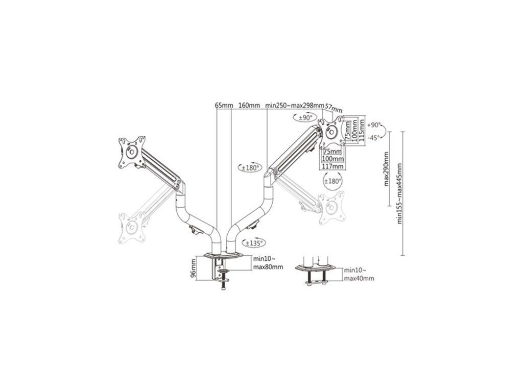 - Odolné nastaviteľné plynové pružiny vhodné pre monitory 2 - 8 kg