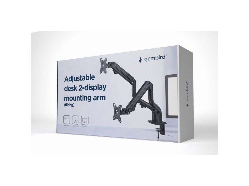 GEMBIRD Držák 2 monitorů na stůl MA-DA2-02, naklápěcí, až do 32” a 8kg, černý