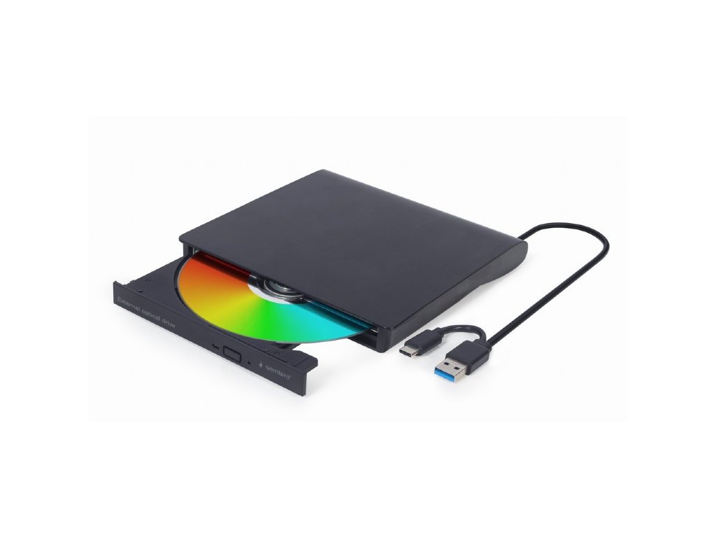 External USB DVD drive, černá Archivujte svá videa, fotografie, data a hudbu na CD nebo DVD. Kompaktní design – ideální pro použití s notebooky. Tichý provoz. Rozhraní: USB Type-C (samec), USB 3.1 Gen. 1 Napájení: 5 V DC, až 0,9 A Maximální rychlosti čtení: *DVD-ROM: 8× *CD-ROM: 24× Maximální rychlosti zápisu: *DVD-R, DVD+R: 8× *DVD-RW: 4× *CD-R: 24× Podporované formáty DVD: DVD-ROM, DVD-R, DVD+R, DVD-RW, DVD-R DL Podporované formáty CD: CDA, CD-ROM, CD-R, VCD, SVCD, CD-RW Podporovaný průměr disků: 80 mm, 120 mm Rozměry: 140 × 140 × 18 mm Hmotnost: 0,36 kg