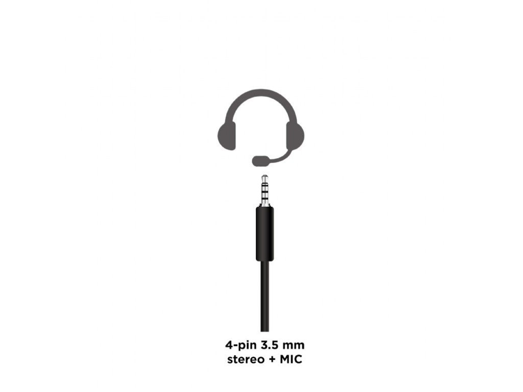 Connectors: stereo 3.5 mm + mic plug (CTIA 4-pin)
