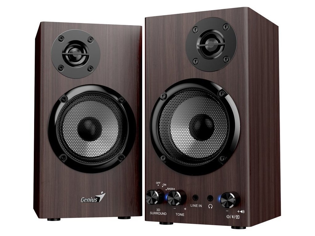 Genius SP-HF520BT, Reproduktory, 2.0, 20W, Bluetooth, 3,5mm jack, dřevěné, tmavě hnědé