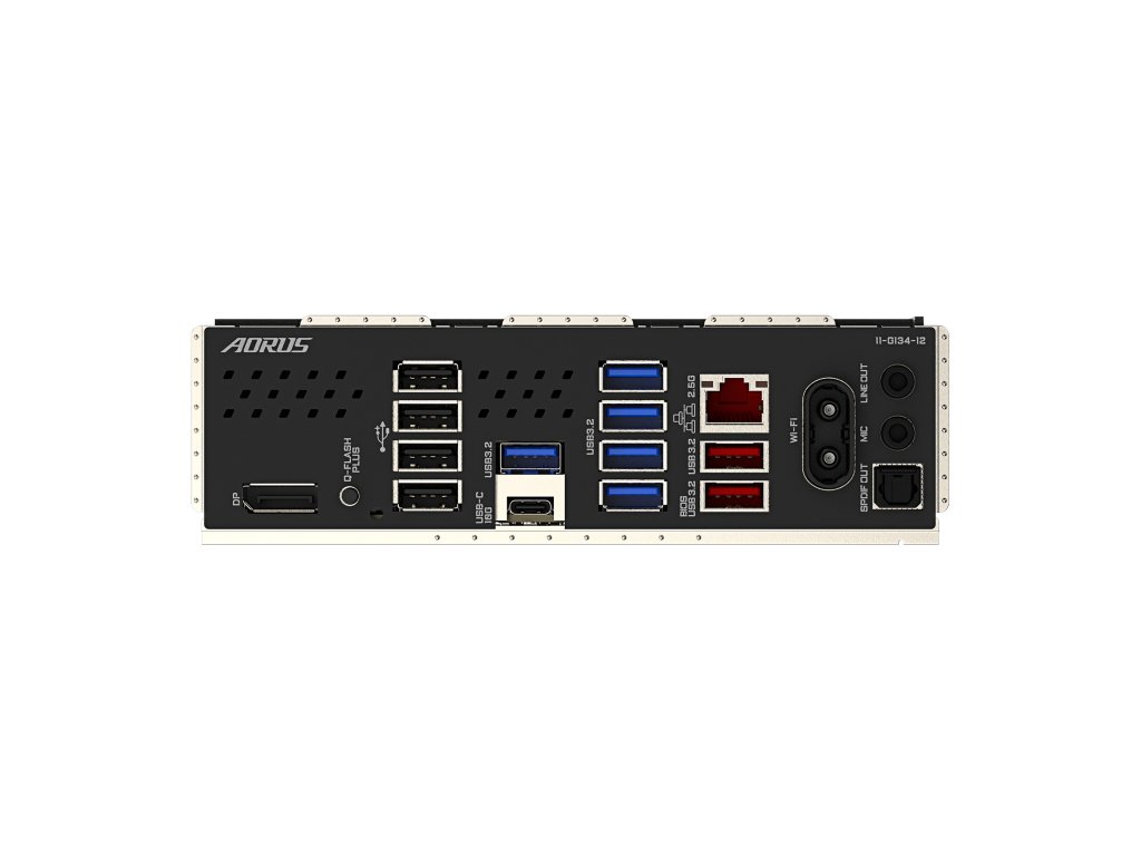 Porty na zadním panelu: * 1x USB® Typ-C® - podpora USB 3.2 Gen 2 * 5x USB 3.2 Gen 1 * 2x USB 3.2 Gen 2 (červený) * 4x USB 2.0/1.1 * 1x DisplayPort * 1x RJ-45 * 2x antenní konektor (2T2R) * 2x audio jack * 1x Q-Flash Plus tlačítko * 1x optický konektor S/PDIF out