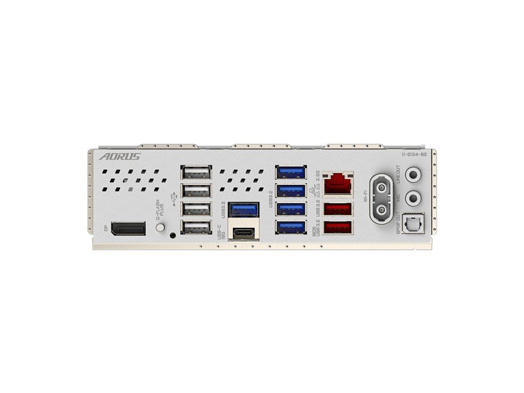 Porty na zadním panelu: * 1x tlačítko Q-Flash Plus * 2x anténní konektor SMA (2T2R) * 1x DisplayPort * 1x USB typ C®, s podporou USB 3.2 Gen 2 * 2x USB 3.2 Gen 2 typ A (červený) * 5x USB3.2 Gen 1 * 4x USB 2.0/1.1 * 1x RJ-45 * 2x audio jack * 1x optický S/PDIF out