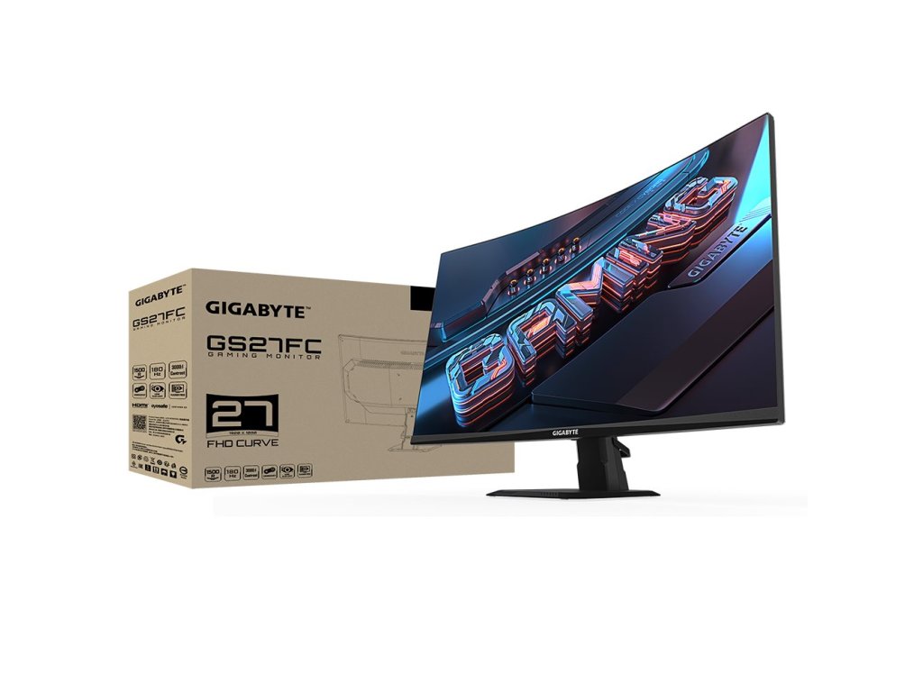 GIGABYTE LCD - 27" Gaming monitor GS27FC, Prohnutý VA 1500R, 1920 x 1080 FHD, 180Hz, 3000:1, 250cd/m2, 1ms, 2xHDMI, 1xDP