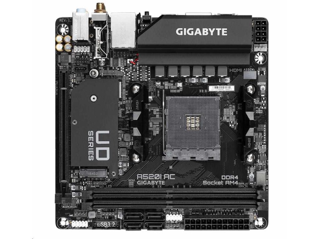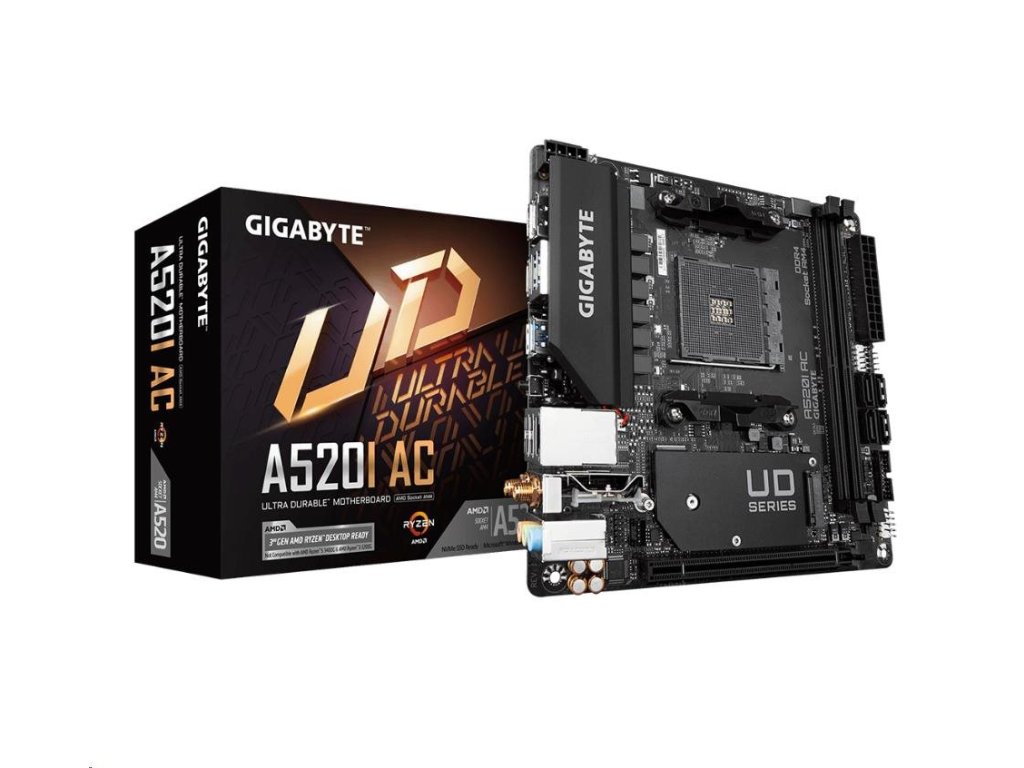 GIGABYTE MB Sc AM4 A520I AC, AMD A520, 2xDDR4, 1xDP, 2xHDMI, WI-FI, Mini-ITX
