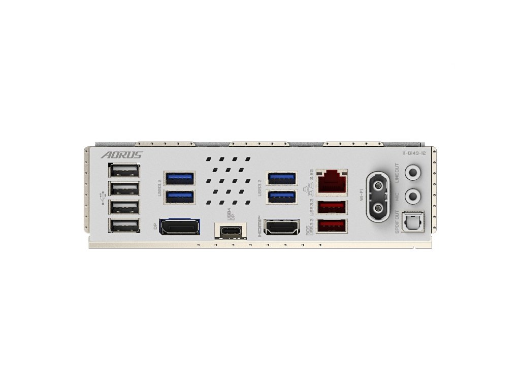 Porty na zadním panelu: * 1x USB4® Type-C® * 4x USB 3.2 Gen 1 * 2x USB 3.2 Gen 2 (červený) * 4x USB 2.0/1.1 * 1x HDMI * 1x DisplayPort * 2x anténní konektor (2T2R) * 1x RJ-45 * 2x audio jack * 1x optický konektor S/PDIF out