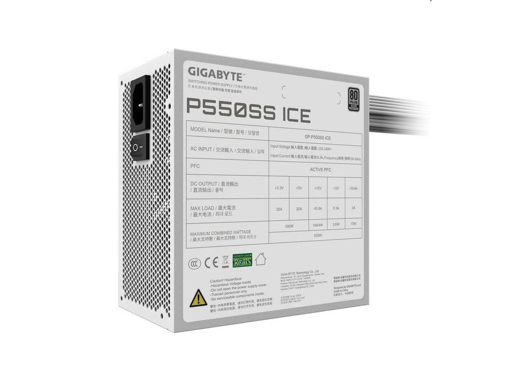 KEY FEATURE Ice white aesthetics 80 PLUS Silver certified (230V EU) Support Intel ATX 3.0 standard (compatible with ATX 3.1) 120mm Fluid Dynamic Bearing (FDB) Fan Flat cable design Powerful single +12V rail OVP/OPP/SCP/UVP/OCP/OTP protection 3 years warranty (Adjusted according to different regions) Model GP-P550SS ICE Type Intel Form Factor ATX 12V v3.0 (compatible with ATX 3.1) PFC Active PFC (>0.9 typical) Input Voltage 155-240 Vac Input Current 6.3A Input Frequency 50-60 Hz Output Capacity 550W Dimension 150 x 140 x 86 mm Fan Type 120mm Fluid Dynamic Bearing (FDB) fan 80 PLUS Silver Efficiency 90% at typical load (230V EU) MTBF >100,000 hours Protection OVP/OPP/SCP/UVP/OCP/OTP Power Good Signal 100-150ms Hold Up Time >16ms Cable Type Flat, All white Connectors ATX/MB 20+4 Pin x 1 : 600mm*1 CPU/EPS 4+4 Pin x 1 : 650mm*1 PCI-e 6+2 Pin x 2 : 600mm+120mm*1 SATA x 3 + 4 Pin Peripheral x 1 : 500mm+120mm+120mm+120mm*1 SATA x 2 + 4 Pin Peripheral x 2 : 500mm+120mm+120mm+120mm*1Dodatočné parametre