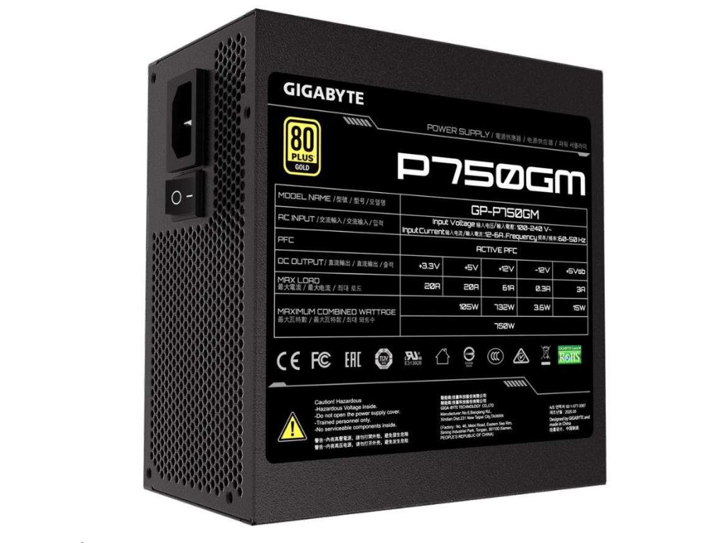 GIGABYTE zdroj P750GM, 750W, 80plus gold, modular, 120 mm fan
